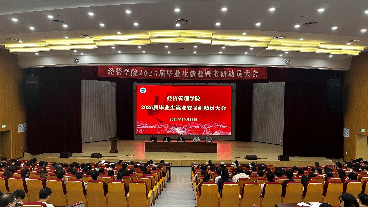 经管学院举行2025届毕业生考研就业动员大会暨专场招聘会 10月16日上午,学院在衣锦校区举行2025届毕业生考研就业动员暨专场招聘会。学院领导班子、专业负责人、班主任、辅导员参加了会议。会议由学院党委书记陈劲松主持。动员会上,学院院长吴伟光从就业形势、考研准备、职业选择、研究生备考等方面做了全面的就业动员,他勉励同学们“既要知行合一,又要劳逸结合,从今出发,为自己更长的人生点亮希望之光。”陈劲松希望同学们认清形势,调整心态,主动出击,实现高质量就业,他表示...