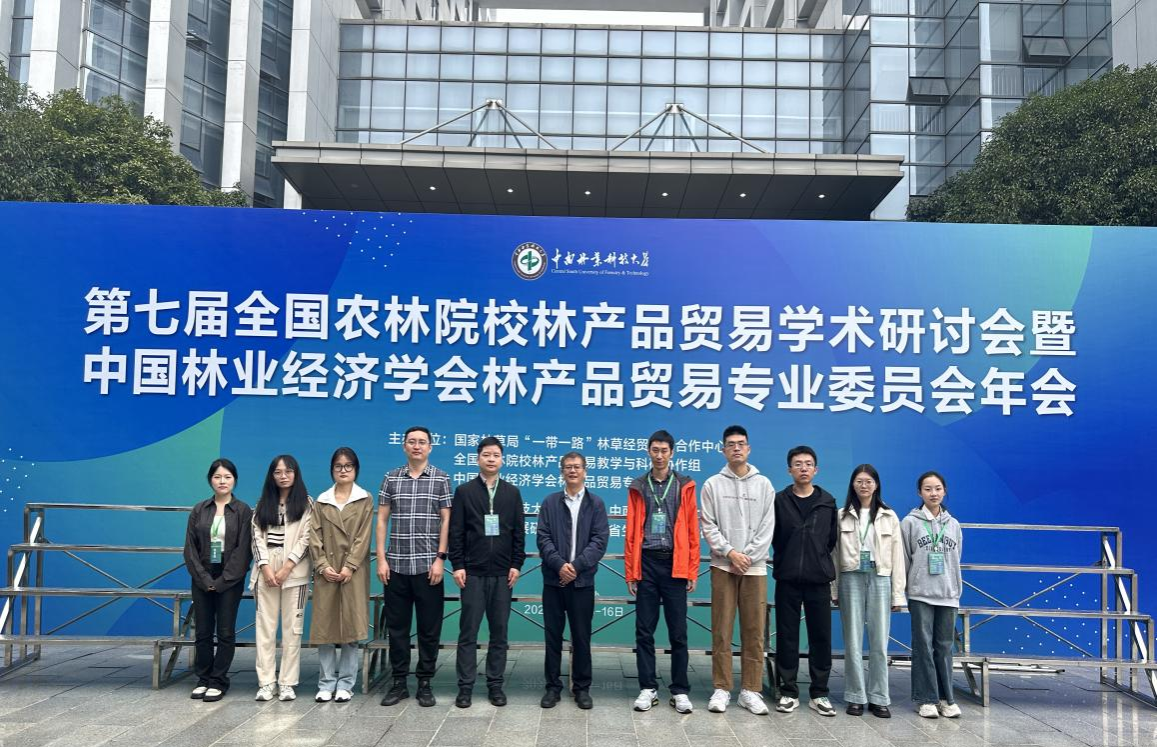 11月15日至16日,“第七届全国农林院校林产品贸易学术研讨会暨中国林业经济学会林产品贸易专业委员会年会”在中南林业科技大学举行。本次会议由国家林草局“一带一路”林草经贸国际合作中心、全国农林院校林产品贸易教学与科研协作组、中国林业经济学会林产品贸易专业委员会共同主办,中南林业科技大学商学院、中南林业科技大学经济学院、湖南绿色发展研究院、湖南省生态文明建设研究基地共同承办,来自浙江农林大学、兰州大学、中国农业大学、西北农林科技大学、北京林业大学、福建农林大学、河南农业大学、对外经济贸易大学、南京林业大学、上海财经大学、安徽财经大学等100余名专家学者代表就新质生产力赋能林产品贸易高质量发展开展学术成果研讨交流。