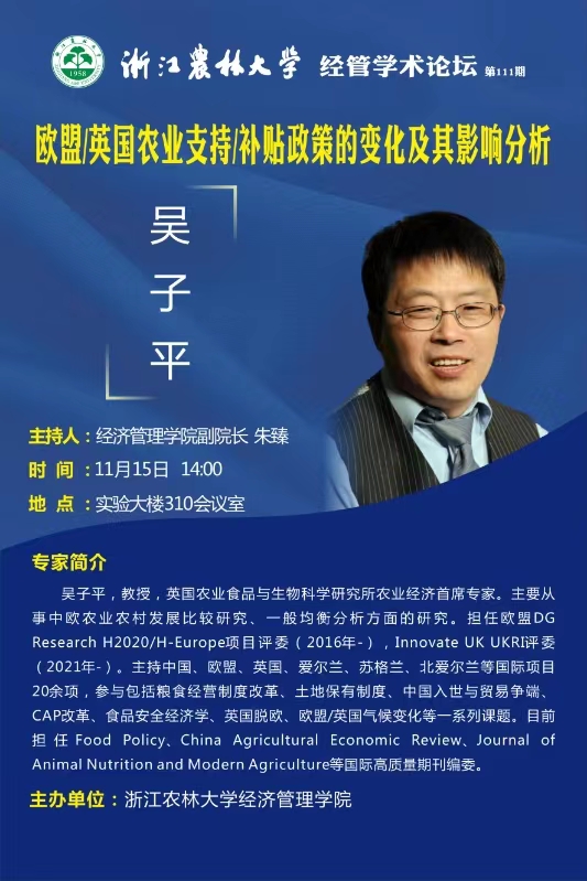 经管学术论坛第111期|欧盟/英国农业支持/补贴政策的变化及其影响分析