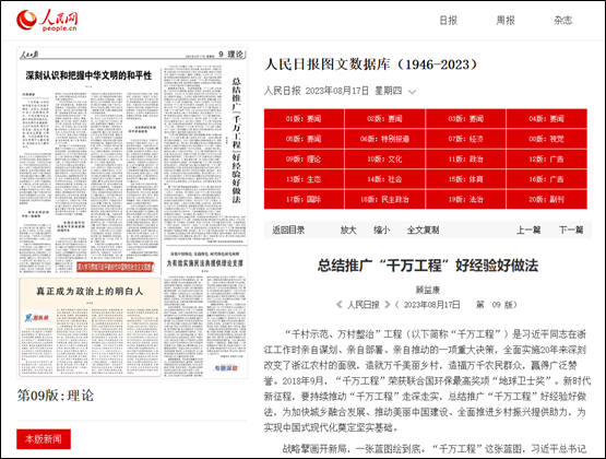 顾益康教授撰写的理论文章“总结推广‘千万工程’好经验好做法”在《人民日报》发表。