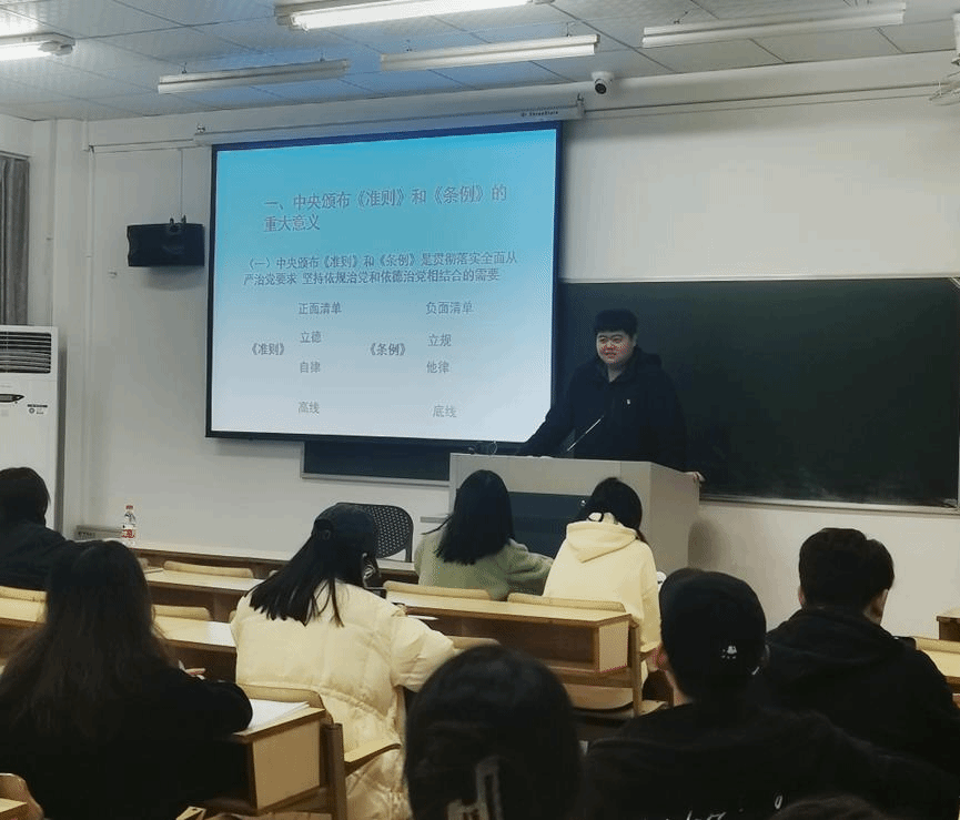 3月23日,支部书记钟程凯作为支部管党治党“第一责任人”,结合党员思想实际,讲授廉政党课,带领党员同志们学习《中国共产党廉洁自律准则》以及《中国共产党纪律处分条例》的内容,讲述廉洁教育的意义,并对支部党员寄予加强理论学习,筑牢思想防线,严以律己廉洁修身等期望,提升了支部党员的廉洁意识,坚定了支部党员“永远吹冲锋号”的政治定力。